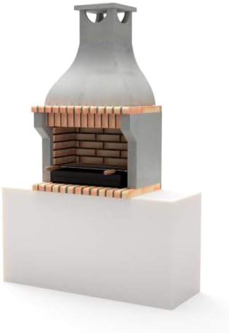 MOVELAR Barbacoa de Obra Prefabricada Liz XL para Carbón y Leña, Cocina de Exterior con Estructura de Ladrillo y Hormigón Refractario, Color Gris y Naranja, 76 x 58 x 210 cm
