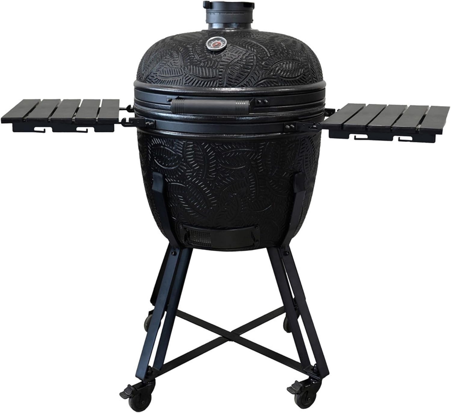 Barbecook Kamado Kamal 2.0 Barbacoa de Carbón Tipo Kamado, Parrilla XXL para Asar, Ahumar y Cocinar al Vapor, Cerámica y Acero Inoxidable, Color Negro, 138 x 84 x 123 cm