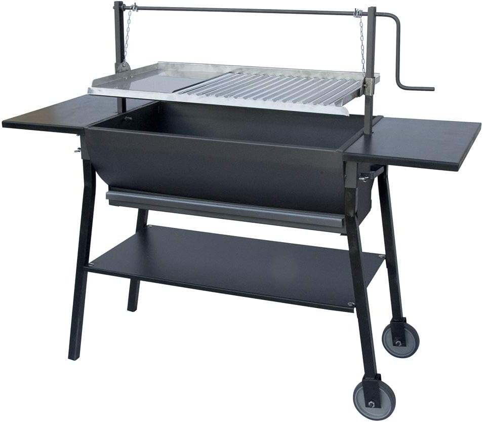 Imex El Zorro 71537 Barbacoa de Carbón con Elevador y Parrilla de Acero Inoxidable, Altura Ajustable y Repisa de Calentamiento, Color Negro, 72 x 40 x 100 cm