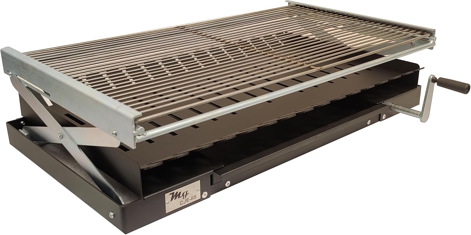 La parrilla elevable permite regular la distancia entre el fuego y los alimentos, facilitando el control de la temperatura durante el proceso de asado.